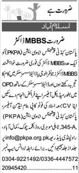 Pakistan Kidney Patients Association latest Classifieds Medical jobs and others can be applied till September 24, 2024 or as per closing date in newspaper ad. Read complete ad online to know how to apply on latest Pakistan Kidney Patients Association job opportunities.