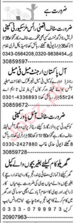 Private Company jobs advertisement dated about 11 September 2023 in daily Express Newspaper invites application for the vacant post of security supervisor guard, manager, security staff, helper, accountant, call operator, office staff, clerk, office boy, security guard, field worker, husband wife and field staff in Faisalabad, faisalabad Punjab Pakistan. Candidates with Matric, I.com, Intermediate, Middle, Bachelor, BA and B.com etc. educational background will be preferred.