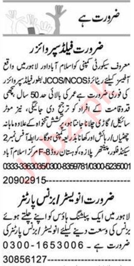 Private Company latest Classifieds Human Resource jobs and others can be applied till 31 August 2023 or as per closing date in newspaper ad. Read complete ad online to know how to apply on latest Private Company job opportunities. Field Sales skills may beneficial for these Private Company jobs. Free accommodation and food may be available.
