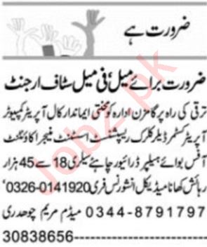 Private Company invites applications for job positions advertised in daily Express dated 26 December 2022 for following vacancies in Faisalabad, faisalabad Punjab Pakistan.
