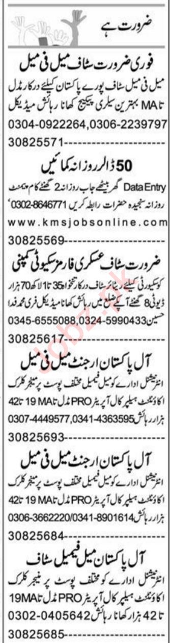 Vacant posts including data entry operator, female office staff, manager, call operator, security guard, helper, accountant, office staff, security staff, clerk and public relation officer are announced in Private Company Faisalabad, faisalabad Punjab Pakistan as per 29 August 2022 advertisement in daily Express Newspaper. Persons with Middle, Bachelor, Intermediate and Matric etc. education can apply.