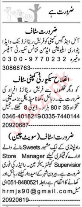 Private Company jobs advertisement dated about 1 January 2024 in daily Express Newspaper invites application for the vacant post of admin officer, security guard, security officer, rider, cashier, store supervisor, patwari, finance officer, store manager, security staff and salesman in Faisalabad, rawalpindi Punjab Pakistan. Persons with Bachelor, Intermediate, Matric, Middle, I.com, BA and B.com etc. education can apply.