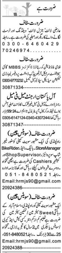 For more jobs register with Jobz.pk.