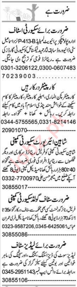 Private Company jobs advertisement dated about 10 July 2023 in daily Express Newspaper invites application for the vacant post of security staff, sales girl, security guard and carpenter in Faisalabad, faisalabad Punjab Pakistan. Candidates with Matric, Middle, Bachelor and Intermediate etc. educational background will be preferred.