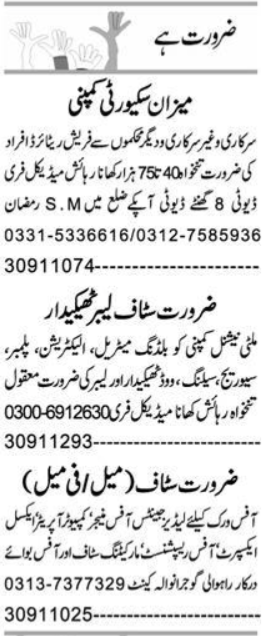 Private Company is looking for candidates for following posts as per job advertisement published in daily Express Newspaper of March 3, 2025 for location Rahwali Gujranwala, gujranwala Punjab Pakistan: