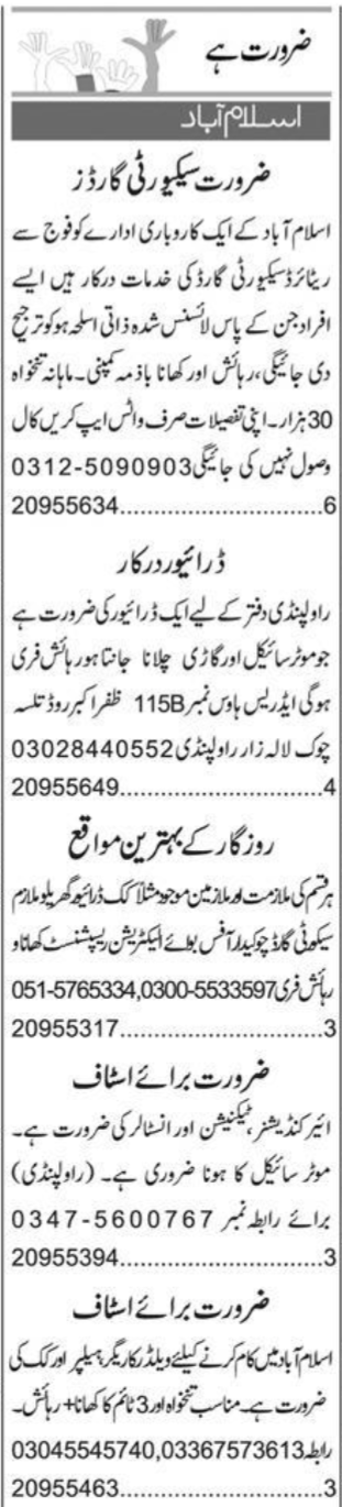 Private Company is looking for candidates for following posts as per job advertisement published in daily Express Newspaper of December 16, 2024 for location Islamabad, rawalpindi Islamabad Pakistan: