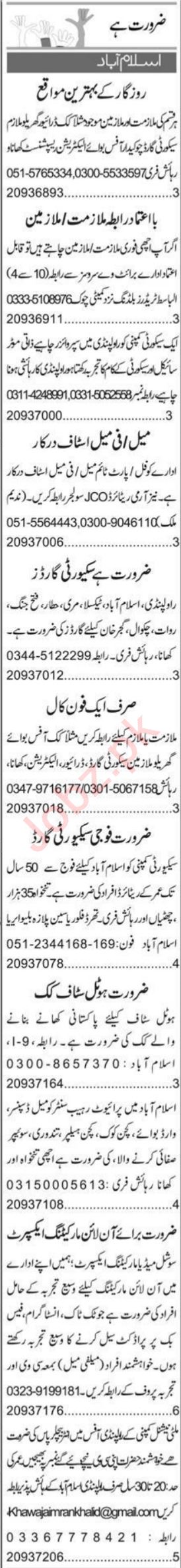 Private Company Islamabad, fateh jang, hattar, murree, chakwal, taxila, gujar khan and rawalpindi Islamabad Pakistan invites applications from eligible candidates for the post of chowkidar, social media marketing expert, jco, driver, ward boy, supervisor, sweeper, office boy, chef, tandoori, kitchen helper, electrician, receptionist, solider, dispenser, security guard, fauji security guard, house worker, online marketing expert and cook as per advertisement of June 24, 2024 published in daily Express Newspaper. Educational qualifications required Middle, Matric, Bachelor, BA and Intermediate etc.