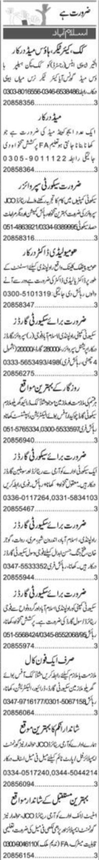 Private Company jobs advertisement dated about 30 May 2022 in daily Express Newspaper invites application for the vacant post of operational supervisor, chef, homeopathic doctor, house maid, security supervisor, cook, ltv driver, maid, care taker, supervisor, kitchen helper, governess, supervisor guard, electrician, driver, security guard, receptionist, office boy, nurse and chowkidar in Islamabad, islamabad Islamabad Pakistan. Educational qualifications required Intermediate, Bachelor, Matric and Middle etc.
