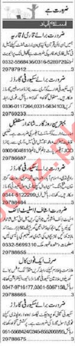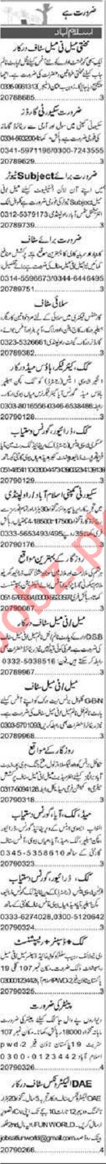 Driver, Cook, Chef, Governance, Quran Teacher, Web Developer, Electrician, Software Engineer, Media Assistant, Carpenter, Data Entry Operator, Accountant, Doctor, LHV, Lady Doctor, HR Officer, Supervisor, Assistant Supervisor, Account Manager, Teacher, English Teacher, Chemistry Teacher, Physics Teacher, Coordinator, Biology Teacher, Maths Teacher, Urdu Teacher, Art Teacher, English Teacher, Office Assistant, Salesman needs in well known companies.