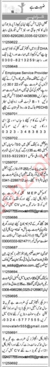 Vacant posts including secretary, accountant, costing executive, maid, car washer, peon, office secretary, computer operator, lady computer operator, team leader, grinding machine operator, electrical engineer, sales officer, marketing manager, engineer, marketing staff and masi are announced in Private Company Karachi, karachi Sindh Pakistan as per 5 June 2023 advertisement in daily Jang Newspaper. Educational qualifications required Matric, B.E, Middle, B.com, DAE, Intermediate, BA and Bachelor etc.