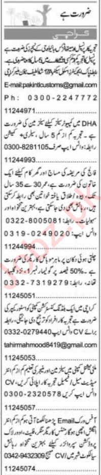 Private Company jobs advertisement dated about 9 January 2023 in daily Express Newspaper invites application for the vacant post of salesman, principal, manager, biology teacher, office staff, mobile technician, patient care, teacher, maths teacher, store keeper and physics teacher in Karachi, karachi Sindh Pakistan. Persons with Matric, Middle, Bachelor and Intermediate etc. education can apply.