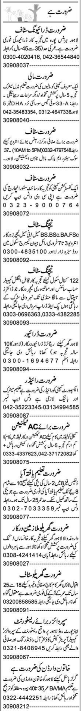 Vacant posts including computer operator, site store incharge, female teacher, house worker, house driver, female warden, cleaner, computer teacher, office boy, sweeper, teacher, mali, supervisor, cook, ac technician, rider, driver, khansama, ltv driver, aya, english teacher, montessori teacher and gardener are announced in Private Company Lahore, lahore Punjab Pakistan as per 3 February 2025 advertisement in daily Express Newspaper. Educational qualifications required Intermediate, Matric, Bachelor, MA, B.com, M.sc, Middle and BA etc.