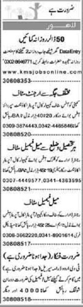 Private Company Lahore, lahore Punjab Pakistan invites applications from eligible candidates for the post of office boy, clerk, computer call operator, call computer operator, call operator, actor, accountant, supervisor, data entry operator and model as per advertisement of March 7, 2022 published in daily Express Newspaper. Persons with Middle, Matric, Bachelor and Intermediate etc. education can apply.