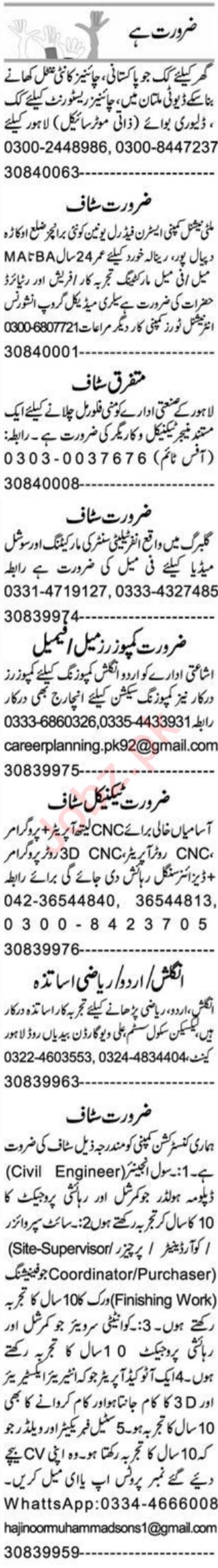 Private Company is looking for candidates for following posts as per job advertisement published in daily Express Newspaper of January 9, 2023 for location Lahore, lahore Punjab Pakistan: