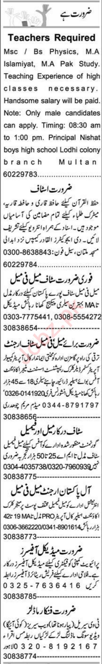 Private Company is looking for candidates for following posts as per job advertisement published in daily Express Newspaper of December 26, 2022 for location Multan, multan Punjab Pakistan: