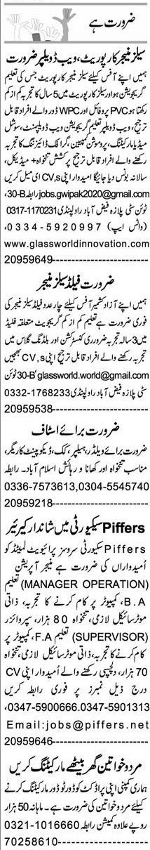 Private Company is looking for candidates for following posts as per job advertisement published in daily Express Newspaper of January 27, 2025 for location Multan, islamabad and rawalpindi Punjab Pakistan:
