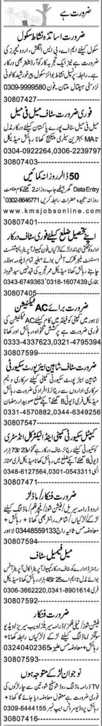 Private Company jobs advertisement dated about 28 February 2022 in daily Express Newspaper invites application for the vacant post of actor, data entry operator, clerk, english teacher, security guard, computer call operator, model, helper, actress, teacher, urdu teacher, security staff, coordinator, receptionist, computer operator, office boy, ac technician and assistant manager in Multan, multan Punjab Pakistan. Bachelor, Matric, Master, Intermediate and Middle etc. educational qualification will be preferred.