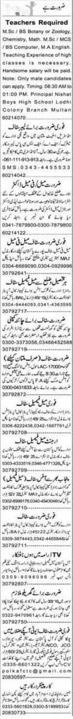 Express Sunday Multan Classified Ads 31 Oct 2021