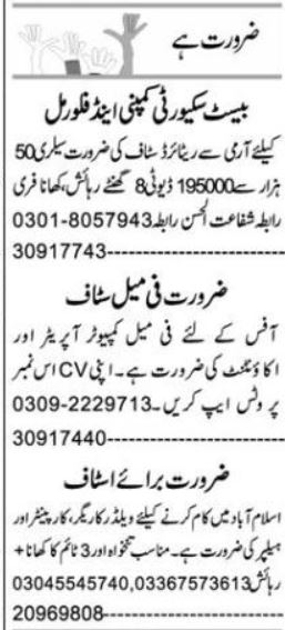 For more jobs register with Jobz.pk.