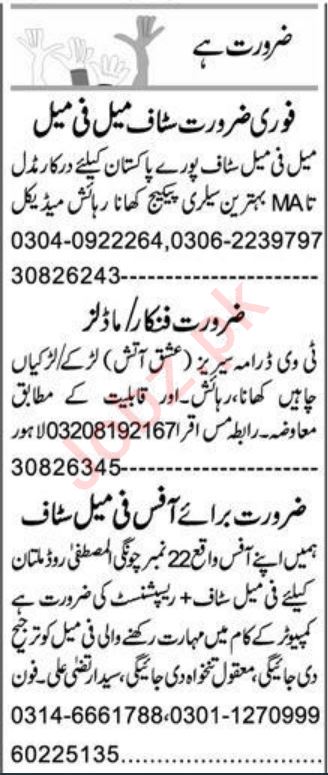 Private Company invites applications for job positions advertised in daily Express dated 5 September 2022 for following vacancies in Multan, multan Punjab Pakistan.
