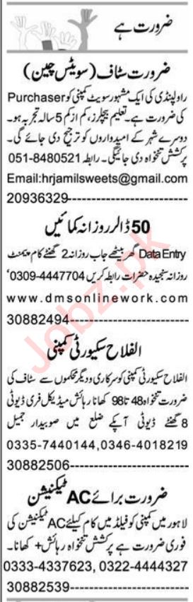 Private Company Multan, lahore and rawalpindi Punjab Pakistan invites applications from eligible candidates for the post of security guard, purchaser, data entry operator, ac technician and security staff as per advertisement of June 9, 2024 published in daily Express Newspaper. Candidates with BA, Bachelor, Intermediate, Matric and Middle etc. educational background will be preferred.