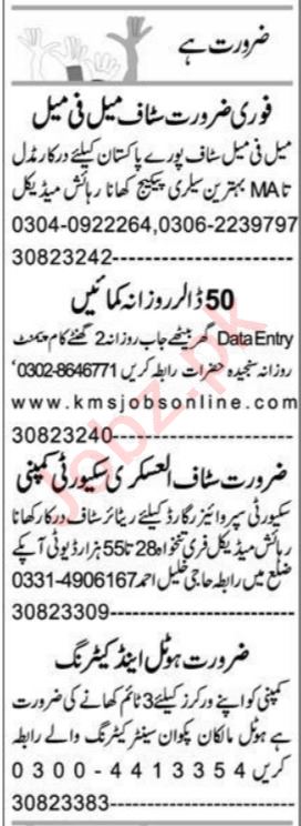 Candidates with Bachelor, Middle, Intermediate and Matric etc. educational background will be preferred.