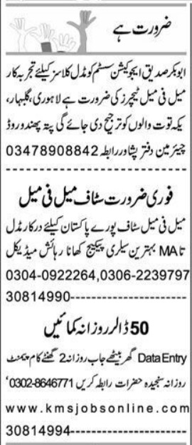 Private Company Peshawar, peshawar Khyber Pakhtunkhwa KPK Pakistan invites applications from eligible candidates for the post of data entry operator, teacher, female teacher and office staff as per advertisement of May 9, 2022 published in daily Express Newspaper. Preferred Education is Matric, Middle, Intermediate and Bachelor etc.
