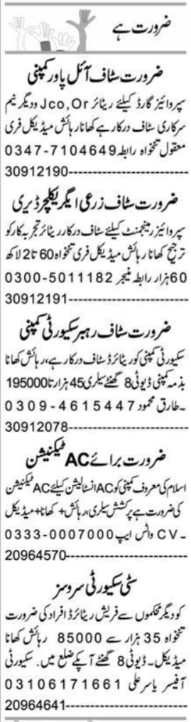 Private Company Sargodha, sargodha Punjab Pakistan invites applications from eligible candidates for the post of supervisor, ac technician, field worker, security guard, supervisor guard and security staff as per advertisement of March 10, 2025 published in daily Express Newspaper. Persons with Middle, Matric, Intermediate and Bachelor etc. education can apply.