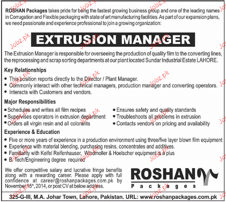 Apply as per details in job advertisement. Login to view further details of how to apply via https://www.jobz.pk online.