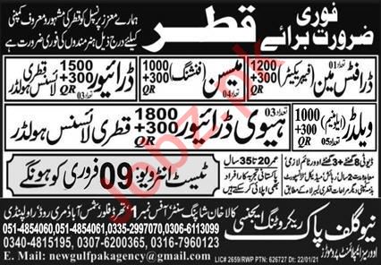 Latest New Gulf Pak Recruitment Agency Manufacturing Posts Qatar 2025