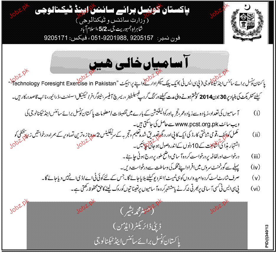 Latest Ministry of Science and Technology MOST Research Posts Islamabad 2025