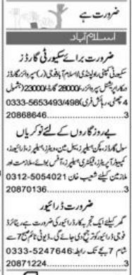 Private Company Islamabad, islamabad Islamabad Pakistan invites applications from eligible candidates for the post of operational supervisor, driver, factory helper, civil guard, office boy, computer operator, kitchen helper, helper, ltv driver, waiter, supervisor guard and salesman as per advertisement of September 21, 2022 published in daily Express Newspaper. Educational qualifications required Middle, Matric, Bachelor and Intermediate etc.
