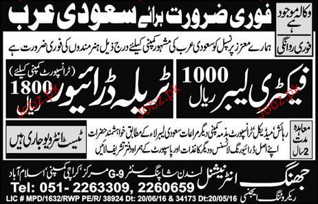 Factory Labors and Tralla Drivers Job Opportunity