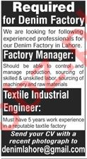 Vacancies in Denim Fabric Company Advertisement August 2020