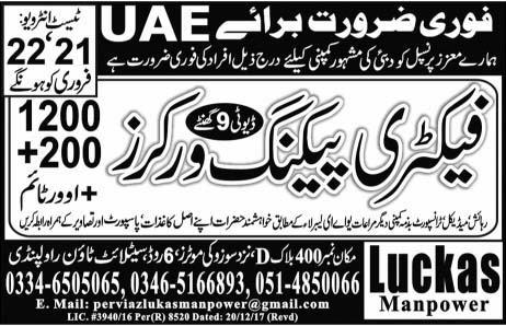 Latest Luckas Manpower Labor Posts Dubai 2025