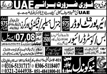 New Gondal Manpower Bureau is looking for candidates for following posts as per job advertisement published in daily Express Newspaper of April 7, 2023 for location Abu Dhabi, sharjah UAE: