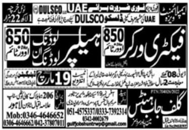Gulf Job Hunts Manpower Services invites applications for job positions advertised in daily Mashriq dated 19 March 2022 for following vacancies in Abu Dhabi, abu dhabi UAE.