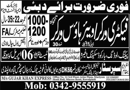Vacant posts including warehouse worker and factory worker are announced in Super Star Technical Trade Test & Training Center Dubai, abu dhabi Dubai as per 3 April 2024 advertisement in daily Express Newspaper. Intermediate and Matric etc. educational qualification will be preferred.