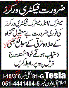 Factory Workers are required in Islamabad.