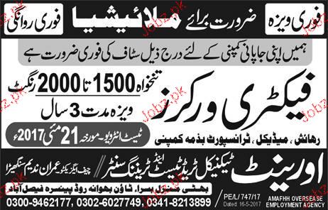 A Japaneses Company Required the service of Factory Workers are required in Malaysia. Residence, Medical and Transport facility will be given by the comapmy.