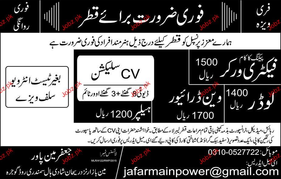 Factory Workers, Loaders and Van Drivers Job Opportunity