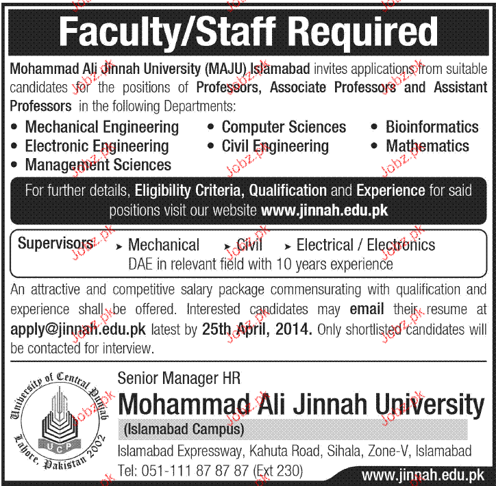 Apply as per details in job advertisement. Login to view further details of how to apply via https://www.jobz.pk online.