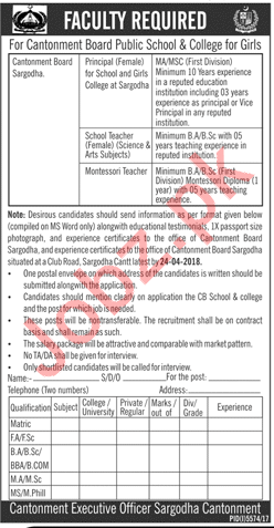 Latest Cantt Public School and Girls College Teaching Posts Sargodha 2025