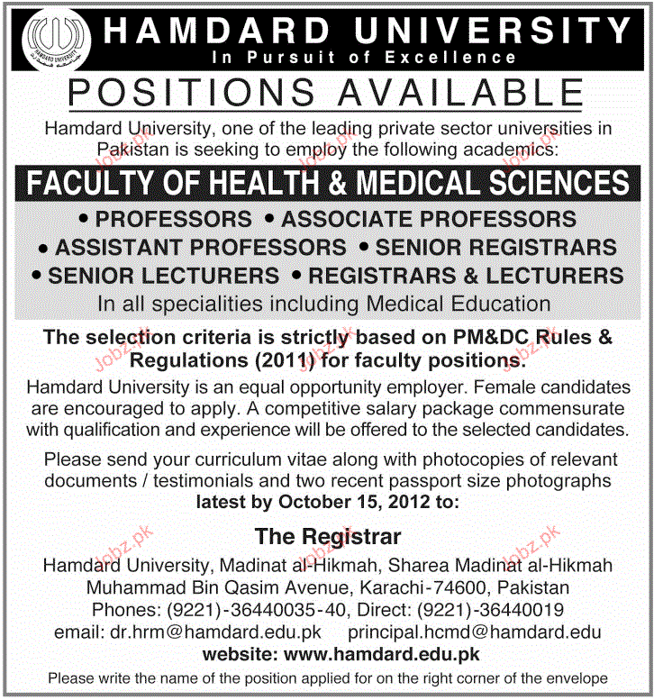 Apply as per details in job advertisement. Login to view further details of how to apply via https://www.jobz.pk online.