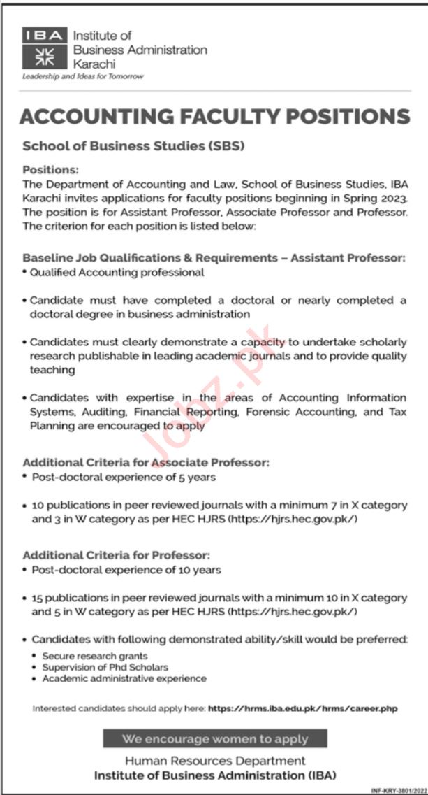 Institute of Business Administration IBA jobs advertisement dated about 2 October 2022 in daily Jang Newspaper invites application for the vacant post of associate professor, assistant professor and professor in Karachi, karachi Sindh Pakistan. Candidates with Phd, Mphil and MS etc. educational background will be preferred.