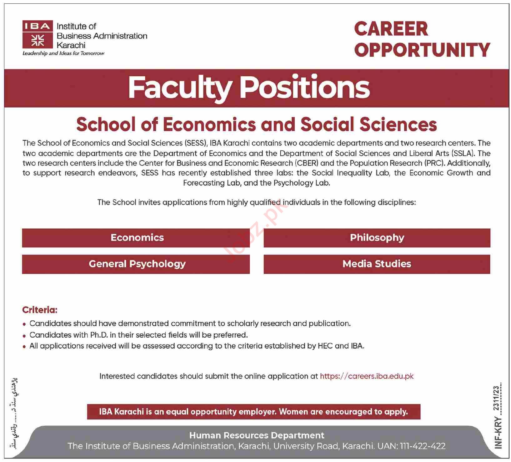 Latest Institute of Business Administration IBA Education Posts Karachi 2025