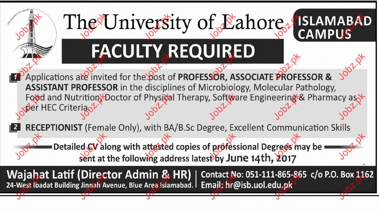 Apply as per details in job advertisement. Login to view further details of how to apply via https://www.jobz.pk online.