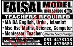 Latest Faisal Model High School Teaching Posts Rawalpindi 2025