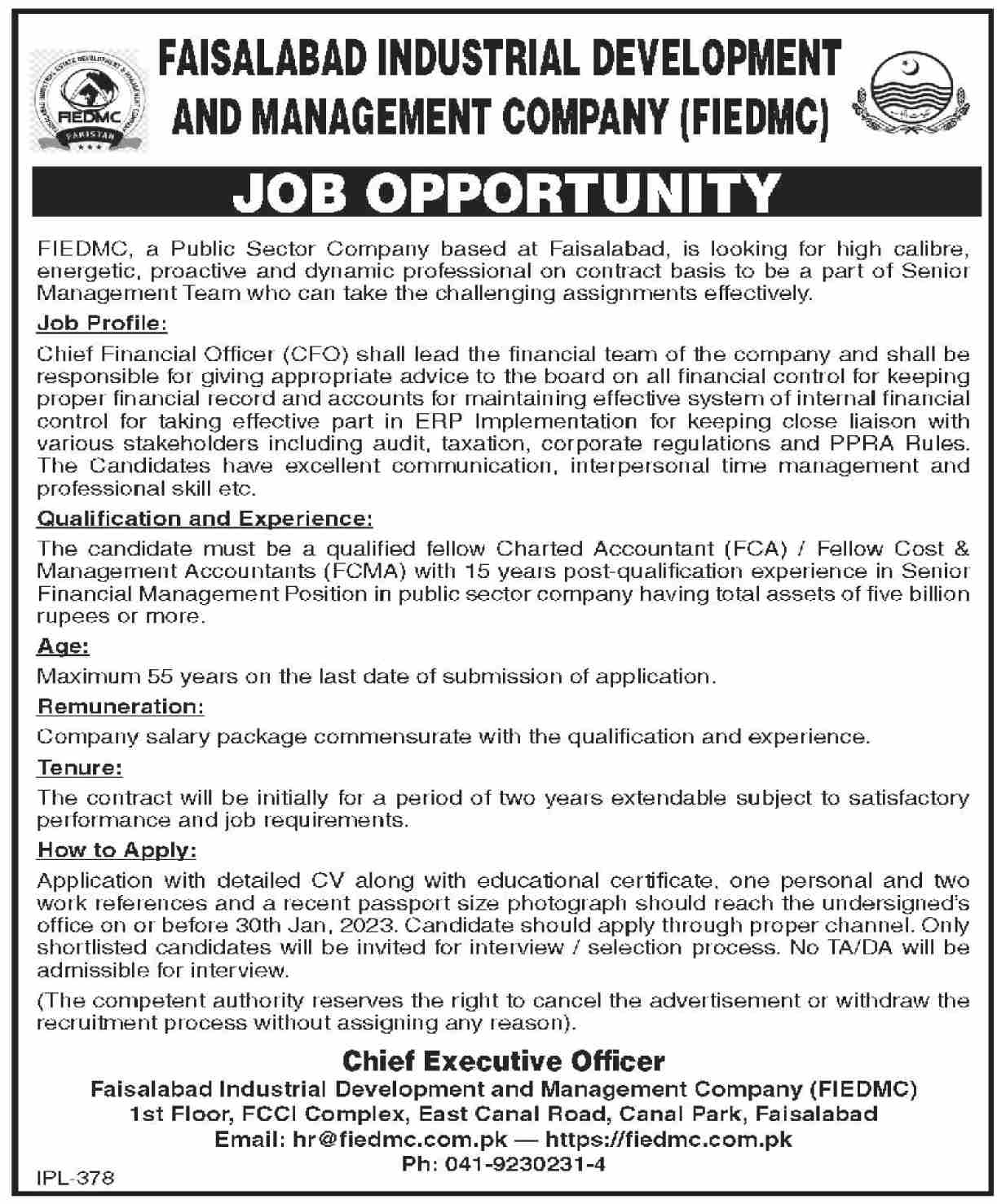 Vacancies in Faisalabad Industrial Estate Development & Management Company FIEDMC Advertisement January 2023