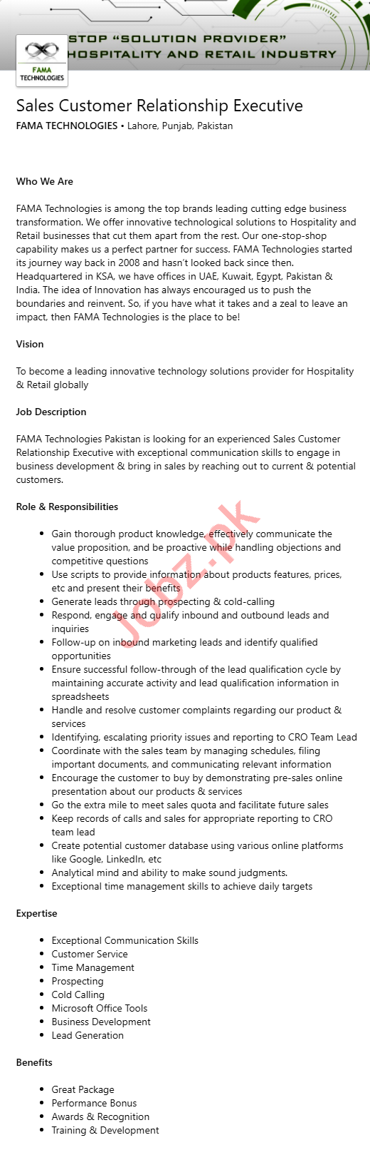 FAMA Technologies Lahore Jobs 2021 For Sales Executive